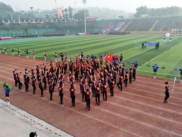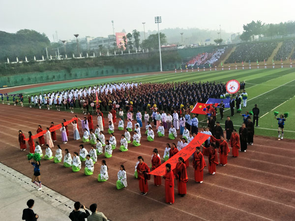 在建校九十周年之际,眉山职业技术学院迎来了第十六届运动会。学院院长徐井万、党委副书记刘晓琼、纪委书记张献华、副院长胡洪安、工会主席彭书君出席,学院全体中层干部参加了运动会开幕式。