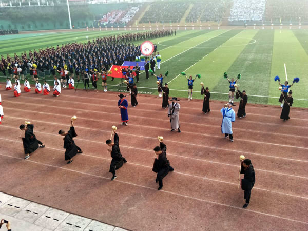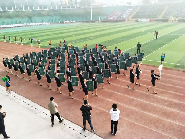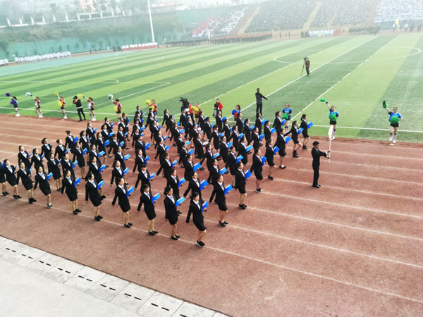 统一的服装,整齐的步伐,响亮的口号,来自全院六个系部的方队,展示着他们的意气风发,在激昂的音乐中有序入场。
