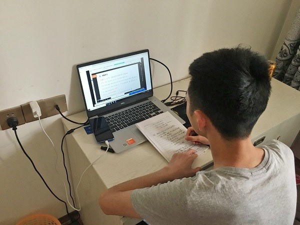 接着是“全家总动员”。李建华说,数学课验算多、推论多,放到网上来教学,对于一位老教师而言,是教师生涯遇到的大挑战。正式开课前,李建华动员全家参与,组织全家建立“家课堂”,进行“实战”演练。通过全家总动员,终于解决了线上直播该如何操作、如何板书等问题,为线上教学正式开课做足了准备。
