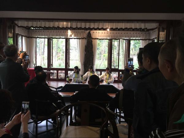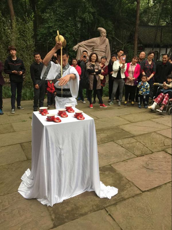商贸旅游系茶艺表演队受邀担任表演嘉宾,指导教师李倩带领陈书凡、夏雨清、王艺馨、段雨薇四名酒店管理专业学生,为来自全国各地的专家和领导表演了宋代点茶和长嘴壶茶艺。在悠扬舒缓的音乐伴随下,学院学子的优美演绎,仿佛将演艺厅变成了一个清雅古韵的茶天地。来宾先是聚精会神地观赏表演,然后又饶有兴味地品尝起清醇淡雅的茶,一面啜饮一面谈笑,不住夸赞学院学子精湛的茶艺技能。新东方教育集团创始人俞敏洪评价说:“这种穿越式的表演很精彩,眉职院的茶艺表演,很棒!”