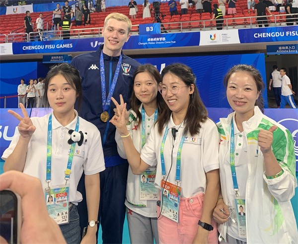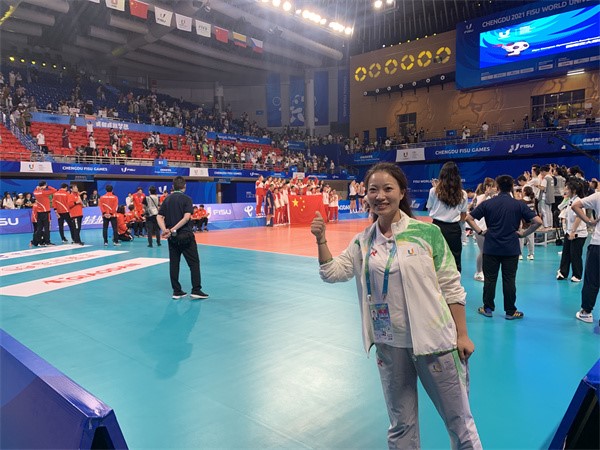 “与广大观众一样,我感叹于大运会开幕式的惊艳,比赛的精彩。作为一名志愿者,我对大运会赛事有序高效的组织,有更加直观的感受。”我校商贸旅游系党总支副书记袁娇作为志愿者在西南交通大学排球场馆担任体育展示和颁奖协调助理,负责排球比赛中场节目表演的彩排、准备、协调和颁奖仪式的流程、点位、对接等工作。