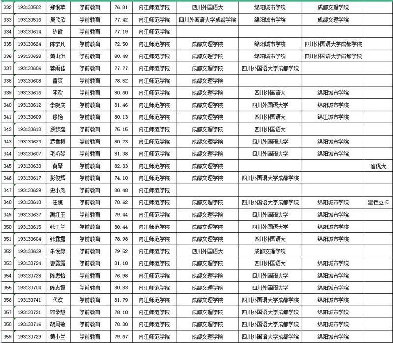 根据《四川省教育厅 四川省退役军人事务厅 四川省人民政府征兵办公室关于做好2022年普通高等学校专升本考试招生工作的通知》(川教函〔2022〕100号)、《四川省教育考试院关于做好我省2022年普通高等学校专升本考试报名和考试工作的通知》(川教考院函〔2022〕6号)和《内江师范学院2022年“专升本”招生简章》文件精神,学校专升本办公室按文件要求组织开展2022届毕业生专升本报名工作。现将经我校初审通过的“专升本”报名学生予以公示,公示时间2022年3月25日-4月1日(五个工作日)。