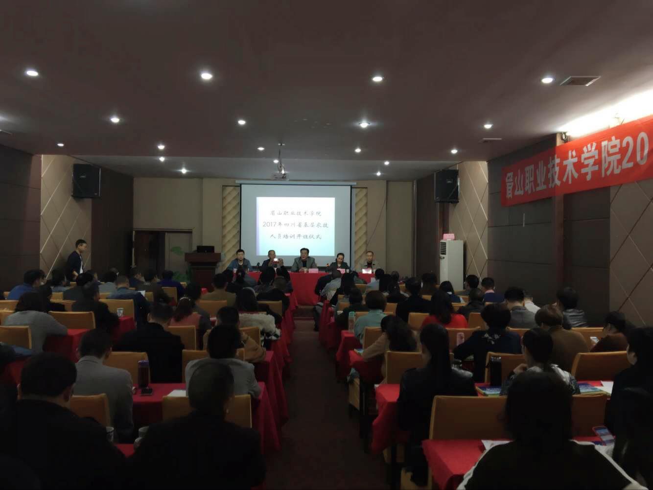 10月17日,眉山职业技术学院2017年度第1期省级基层农技人员知识更新培训班在眉山市滨江花园酒店开班,学院党委委员、副院长张望,科技合作处副处长刘聃、农业技术系主任杨加琼、党总支书记赵建聪、党政办主任李尧以及来自宜宾市8个区县和内江市3个区县的100名基层农技人员参加了开班仪式。仪式由赵建聪主持。