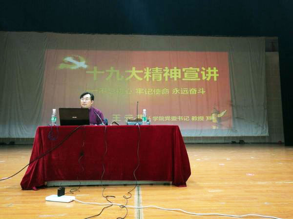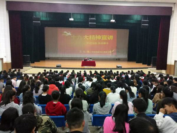 中国共产党第十九次代表大会的胜利召开,标志着中国特色社会主义已经进入了新时代,久经磨难的中华民族迎来了实现从站起来、富起来到强起来的伟大飞跃。十九大召开以来,学院党委及各党总支充分利用党员会、校园网、微信公众号等形式宣传十九大精神,思政教学部也结合“形势与政策”课程教育教学,将十九大精神作为教学要点,邀请学院主要领导为在校学生作十九大精神的宣讲报告。