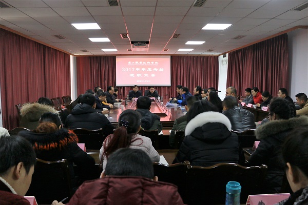 1月10日上午,学校在行政楼一楼会议室召开2017年年度考核述职大会。市委组织部付子瑜科长到会监督指导。学校中层及以上领导人员,各党总支委员、部分教研室主任、八级职员、党员代表、教师代表共计52人参加会议。会议由党委副书记刘晓琼主持。