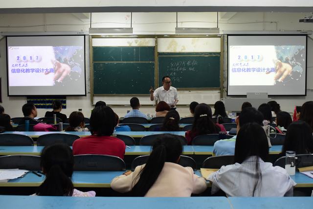 为全面推进文化艺术系课改,积极引导教师探索教学方式创新,创建多元化教学评价机制,提升教师运用现代化教学手段突破教学重难点的能力,5月22日下午,文化艺术系在2102教室组织开展了2017年信息化教学设计比赛。本次比赛由刘桦、邓燕红、李旭、黄艳、熊祥梅、赵兵、唐华、朱冬梅担任评委,教务处处长罗树明、职员袁南星、林建兵特邀参加设计比赛。 比赛中,参赛的17支教师团队从教学分析、教学设计、教学过程和教学反思等方面对所授课程做了精心设计。他们的课件制作精美、内容充实,以信息化教学手段为载体,积极调动学生的学习兴趣,展示项目化教学模式,培养学生自主合作学习的能力。经过激烈的角逐,最终李晓航《轻声的辨识与发音》、李律佳《飞舞树叶》、于海平《原地单手肩上投篮》三支教师队伍的作品获得了本次比赛“一等奖”。 比赛最后,罗树明就此次参赛的17个教师作品,从信息化手段的选择与使用、PPT的制作与内容呈现,以及教学的整体设计做了中肯的点评。 赛后翌日,文化艺术系即召集各教研室主任针对本次比赛的优点与不足展开研讨,并有针对性地提出改进意见,为选送参加学院比赛的教师指明改进方向。
