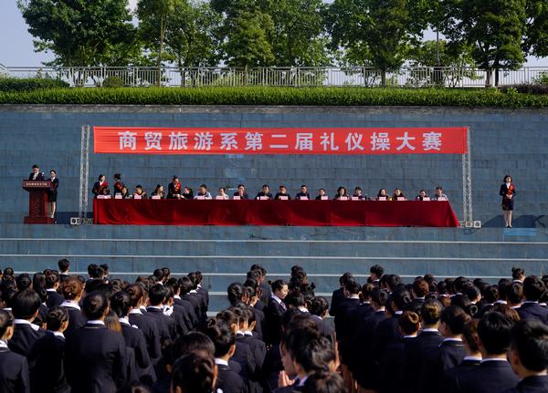 11月22日,商贸旅游系在学院体育场举行礼仪操比赛,学院党委书记王元珑,党委委员、副院长胡洪安,学生处保卫科科长孙亮,团委副书记袁娇出席比赛现场。