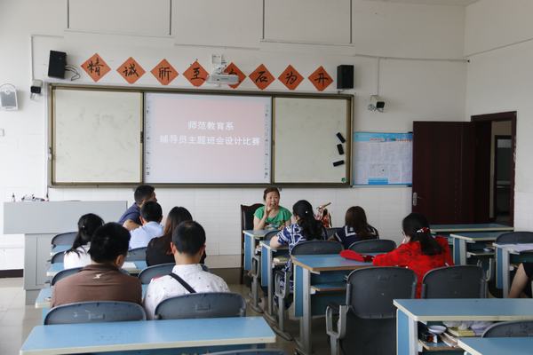 切实提升辅导员职业能力,达到共同进步的目标,师范教育系在5月下旬进行了主题班会设计比赛,并于6月1日中午在1208教室进行了现场点评。活动邀请了系党总支书记丁盛、副主任张雪艳、副教授廖敏作为评委,系辅导员全程参与。