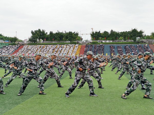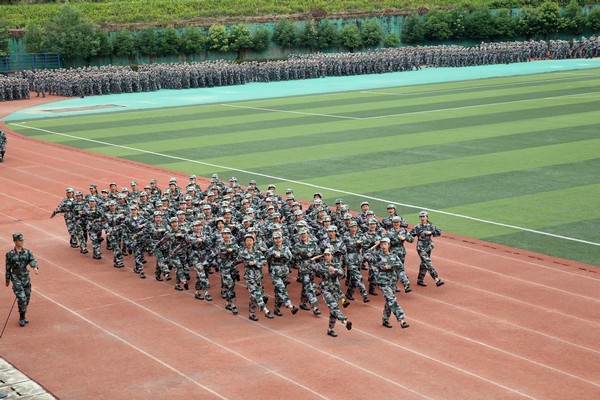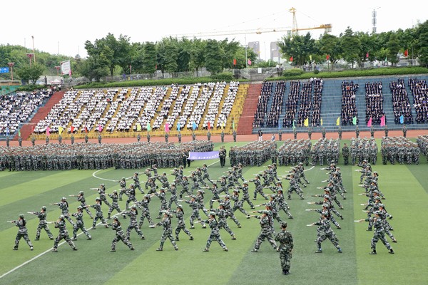 在雄壮的中国人民解放军进行曲中,分列式暨汇报表演开始。2200余名新生排列成整齐的方阵,踏着稳健的步伐,昂首挺胸依次走过主席台,接受全校师生的检阅。他们步伐统一,口号响亮,英姿飒爽,意气风发,表现新时代青年学生的坚毅与刚强,以昂扬向上的精神状态向师生展现他们的蜕变。