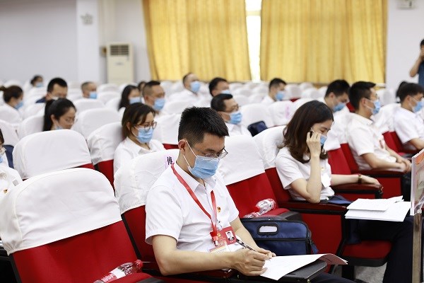大会主席团成员代贤军、徐井万、杨成芬、张望、胡洪安、彭书君、梁昌秋等在主席台就坐。会议应到代表100人,实到代表99人。