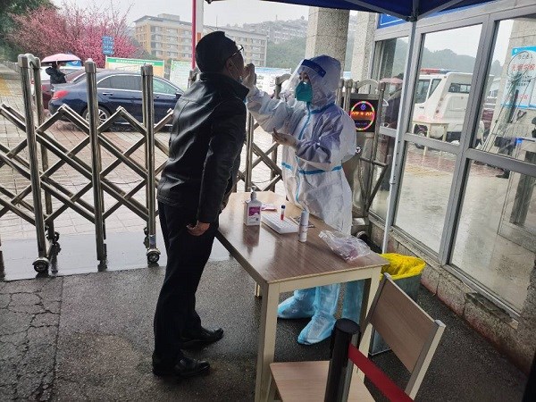 在校门口,督查组一行仔细检查了核酸检测点人员设置、检测器具配置、现场排队等情况,并实时督促相关职能部门落实教职工返校疫情防控措施。严懿指出,校门防疫举措是校园疫情防控的第一道防线,承担着保护师生安全的重大责任。要严格落实返校教职员工一律检测体温、查验核酸检测报告、查验健康码、规范佩戴口罩,同时要及时了解所有教职工寒假期间是否有出川旅行史,是否到达过中高风险地区等重要信息,严把校园疫情防控关。
