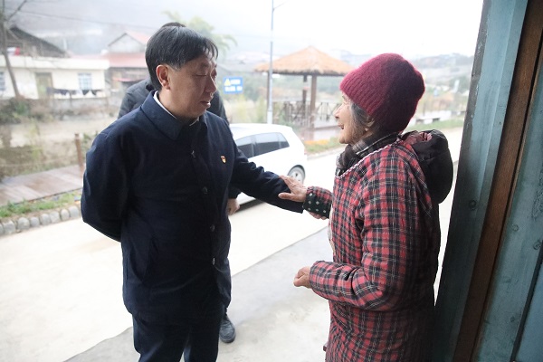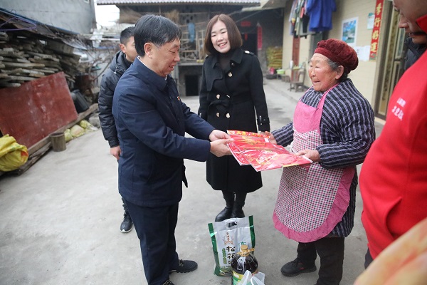 代贤军一行来到草坪村老党员、脱贫户、退居二线村组干部、致富带头人家中,为他们送去米、面、油等物品,并为他们贴上春节对联。代贤军与他们叙聊家常,详细了解他们的家庭情况和需求,同时积极宣传讲解巩固脱贫攻坚成果与乡村振兴有效衔接的相关政策,鼓励他们保持乐观向上的生活态度,增强战胜困难的信心和勇气,充分利用自身优势和资源,实现乡村振兴、人民富裕。