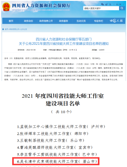 近日,四川省人力资源和社会保障厅等五部门公布了2021年度四川省技能大师工作室建设项目名单,我校申报的“吴长清中式烹调技能大师工作室”被认定为省级技能大师工作室。