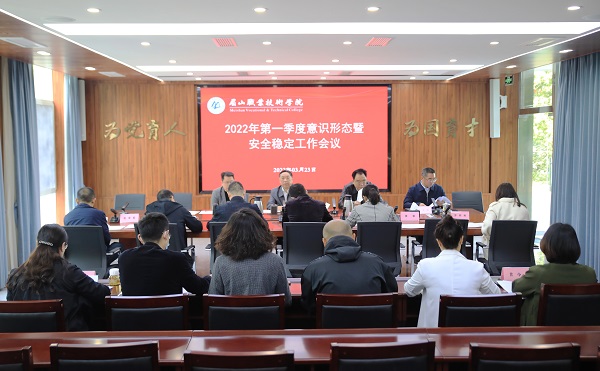 3月23日,学校在行政楼一楼会议室召开2022年第一季度意识形态暨安全稳定工作会,学校党委书记代贤军出席会议并讲话,党委委员、副院长张望、胡洪安,党委委员、工会主席彭书君参加会议。