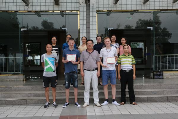 最后张望为来自荷兰的雅涵、威伟颁发了结业证书,并送上了校徽。