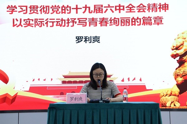 开班仪式结束后,罗利爽以“学习贯彻党的十九届六中全会精神,以实际行动抒写青春绚丽的篇章”为主题展开了第一堂团课宣讲。