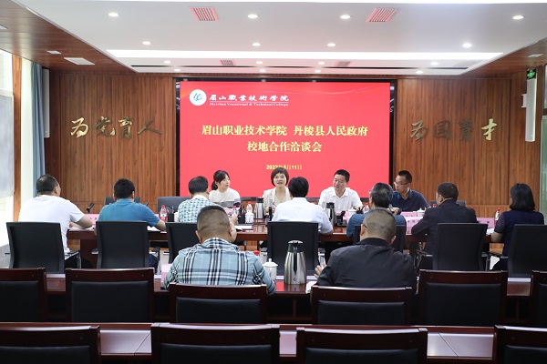 5月11日,丹棱县副县长黄琴波、教体局局长胡曦、教体局副局长杨成程、丹棱职中校长李自忠一行4人到校洽谈校地合作。党委书记代贤军出席洽谈会。