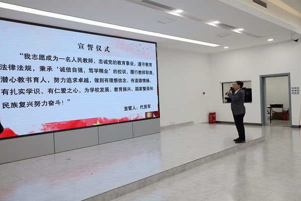 代贤军带领参会人员重温了教师誓词。代贤军代表党委向获得表彰和从教30年的教师表示祝贺,肯定了教师的先锋模范作用和学校师德师风建设的成效。他要求,全体教职员工要以先锋为榜样、以模范为方向,进一步涵养师德师风,提升教学水平;要保持正确的政治方向,认真学习贯彻落实党的二十大精神,尤其是关于教育的重要论述,不断以党的创新理论武装头脑,指导实践;要切实加强先进模范教师的宣传工作,加强立标杆、树典型工作,传承好先进模范教师优秀精神品格,为学校建设更高水平的职业技术大学凝聚强大的精神动力;要严格师德师风考核,坚决执行师德师风一票否决制,常态化、经常化、一体化开展师德师风警示教育和各类尊师重教活动,以丰富载体、鲜活案例进一步铸牢学校师德师风创建成效,以一流的师德师风引领学校高质量发展;要以立德树人为根本任务,自觉增强为党育人、为国育才的政治担当,努力培养更多德智体美劳全面发展的社会主义建设者和接班人,为社会经济发展贡献力量。