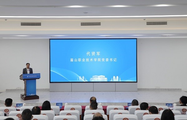 代贤军代表全校师生感谢企业的大力支持,并预祝校企合作签约项目开花结果。他指出,此次集中签约是校企双方认真贯彻落实党的二十大精神的重要体现,是服务眉山“1+3”产业的内在需求,也是当前眉山新能源新材料产业技术转型、产业升级的迫切需要,更是学校探索高质量职业教育、提高人才培养质量的必经之路。