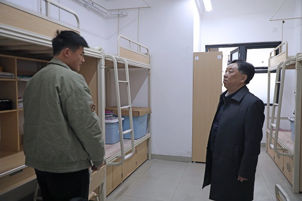 在学生宿舍,代贤军亲切询问同学们假期生活及返校感受,逐一了解大家的基本情况,并和同学们拉起家常。代贤军叮嘱同学们,在校期间要提高安全防范意识,确保人身财产安全,遇到困难要第一时间联系辅导员,寻求老师的帮助。他勉励同学们,要珍惜美好的青春时光,要认真学习专业知识,刻苦锤炼技术技能,努力成为高素质技能人才。