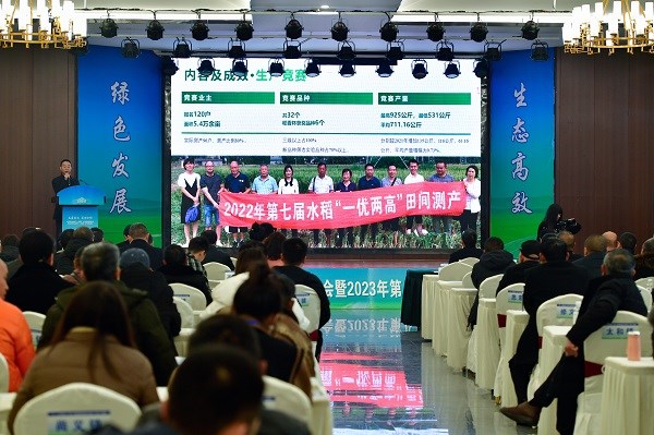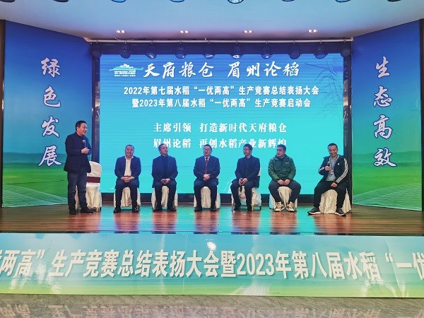 深入学习贯彻党的二十大精神,以实际行动打造新时代更高水平的“天府粮仓”。2月17日上午,眉山市东坡区2022年第七届水稻“一优两高”生产竞赛总结表扬大会暨2023年第八届水稻“一优两高”生产竞赛启动会在东坡区岷江现代农业示范园区举行。大会由东坡区人民政府、眉山职业技术学院、市农业农村局、四川农业大学水稻研究所联合主办。大会共分评选、总结表扬与第八届竞赛启动三个阶段。