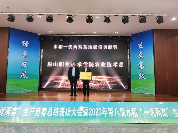 作为本地涉农高校和全市唯一的公办高校,眉山职业技术学院,已连续7年参与主办“一优两高”活动。徐井万在总结表扬阶段的眉州论稻活动发言中,以“四个持续”介绍了学校在涉农人才培养、农技推广等方面工作的开展情况。徐井万指出,近年来,学校持续推进高水平专业群建设,学校现代农业技术专业群是全省唯一将专业群建在区域农业产业链上,贯通种养加检,保障专业结构与产业结构高度匹配的专业群。持续开展耕读教育厚植“三农”情怀,传承弘扬东坡农耕文化,编写《东坡农耕文化教程》,打造一批实践基地,把课堂建在田间地头,解决了学生不愿学农、不愿从事农业的问题。持续深化产教融合变革育人方式,推动涉农职业教育与农业生产体系、涉农院校与农业生产主体、教师与农技人员、人才培养与农业生产相衔接,以真实应用驱动教学改革,构建起“五双”人才培养模式。持续探索农技推广路径,广泛开展基层农技人员培训,承办好科技兴村在线平台,组建起“三务”服务队解决生产难题,全程参与生产竞赛实施过程,实现了学与用的全面有机融合。徐井万表示,学校将主动扛起打造新时代更高水平“天府粮仓”的政治责任,全面落实中央、省委、市委区委决策部署,强化政行校企四方合作,为东坡区充分发挥“粮食生产功能区”优势,推动东坡区、眉山市乃至全省水稻产业绿色、生态、高效发展贡献力量。
