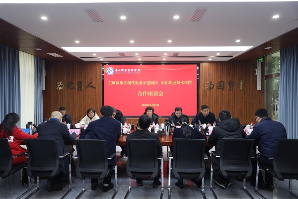 2月21日,东坡区岷江现代农业示范园区党工委书记袁晓霞一行6人来校洽谈合作事宜。学校党委书记代贤军出席座谈会并讲话。