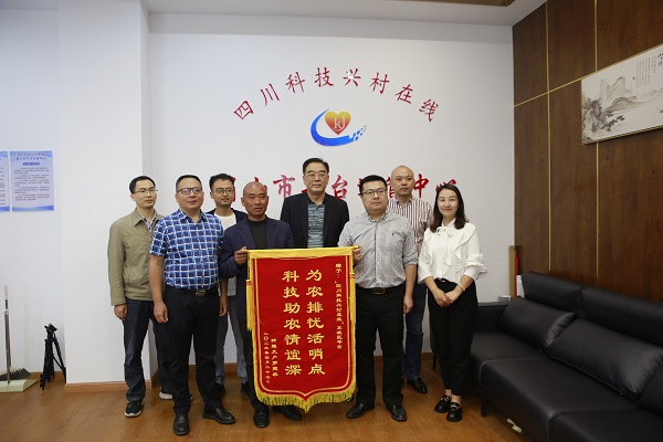 4月28日,在位于学校内的四川科技兴村在线东坡区平台运营中心,东坡区太和镇的种粮大户罗建敏将一面写着“为农排忧活哨点 科技助农情谊深”的红色锦旗赠与“四川科技兴村在线”东坡区平台,感谢该平台利用科技手段帮助他及时解决了水稻种植当中遇到的紧迫问题。