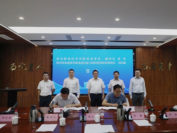 四川省农业科学院农业信息与农村经济研究所党委书记何鹏,党委副书记、所长刘宗敏,党委副书记、纪委书记林正雨,党委委员、副所长杜兴端出席签约仪式。学校科技处、发展改革和合作处、农业技术系相关负责人,四川省农业科学院农业信息和农村经济研究所党员干部20余人参加签约仪式。