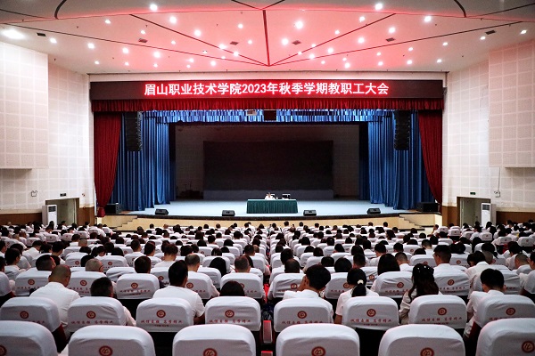 9月1日,全校2023年秋季学期教职工大会在艺术中心举行。党委书记代贤军出席大会并讲话时强调,全体教职工要坚定以习近平新时代中国特色社会主义思想为指导,深入贯彻习近平总书记关于职业教育工作的重要指示精神,认真学习领会习近平总书记来川视察重要指示精神,贯彻落实省委、市委有关决策部署,进一步明晰“建设特色鲜明现代化职业技术大学”的奋斗目标,满怀饱满热情,坚持实干作风,立即行动起来,积极投身工作,为实现新学期各项工作顺利启动起好步、打好底、开好局,奋力推动学校高质量发展,谱写学校现代化建设新篇章。