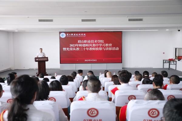 9月8日,学校在招生就业楼二楼会议室召开2023年师德师风集中学习教育暨光荣从教三十年教师致敬与表彰活动。学校党委书记代贤军出席活动并讲话,校级领导参加活动。活动由党委委员、工会主席彭书君主持。