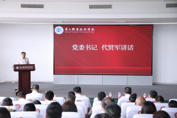 代贤军强调,教师是立教之本,兴教之基。党中央国务院高度重视职业教育,加大力度推动职业教育改革发展,将教师队伍建设摆在突出位置,作出一系列重大决策部署。希望全校教师要坚持思想铸魂,做到信念坚定,坚持不懈用中国化时代化的马克思主义武装头脑、指导实践,深刻认识办好人民满意的教育是党之大计、国之大计,始终不忘教书育人初心,牢记为党育人、为国育才使命,以对党、对国家、对人民高度负责的态度担当新时代育人使命,培养堪当民族复兴重任的时代新人;要坚持崇德尚美,做到师德高尚,坚持爱党爱国爱社会主义、爱生爱校爱自己的名声,以自身的人格魅力开启学生心灵之窗,以德施教、以德立学、以德育德,真正成为塑造学生品格、品行、品味的引领者和示范者;要坚持敬业立学,做到业务精湛,将扎实的知识功底、过硬的教学能力、勤勉的教学态度、科学的教学方法作为教师的基本素质,不断提升教育能力、科研能力、社会服务能力。