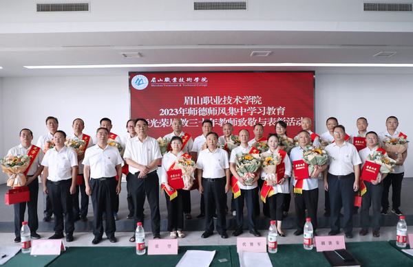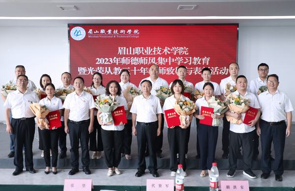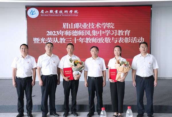 会上,全体教师重温了教师誓词,作了2023年阶段性师德师风建设情况总结,宣读了《中共眉山职业技术学院委员会 眉山职业技术学院关于表彰2023年“优秀教师”“优秀管理人员”“师德先锋”的通报》,党委委员、副校长张望为师德先锋颁发证书,党委委员、副校长胡洪安为优秀管理人员颁发证书,党委委员、副院长杨兴江为优秀教师颁发证书。从教三十年教师代表李勇胜、优秀教师代表王美、学生代表王雨荷分别作了分享发言。