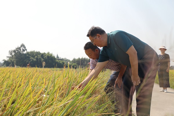 9月14日,学校党委委员、副校长胡洪安带领农业技术系师生深入水稻种植一线,对眉山市东坡区人民政府、眉山职业技术学院、眉山市农业农村局、四川农业大学水稻研究所主办的2023年第八届水稻“一优两高”生产竞赛的的197户参赛者进行水稻生产竞赛测产验收工作。