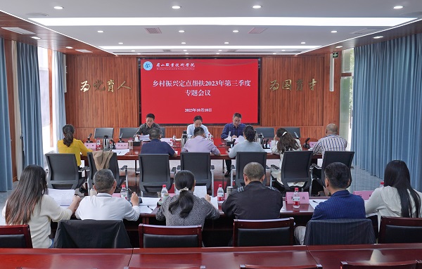 10月10日,学校在行政楼一楼会议室召开乡村振兴定点帮扶2023年第三季度专题会议。学校党委书记出席会议并讲话。他强调,全面推进乡村振兴是实现中华民族伟大复兴的重大任务,定点帮扶是实现乡村振兴的重要措施,也是高校履行社会服务职能的重要手段,需要久久为功长期坚持。会议由党委委员、工会主席彭书君主持。