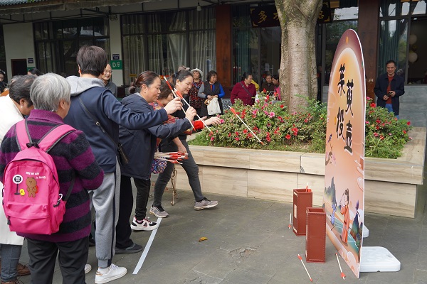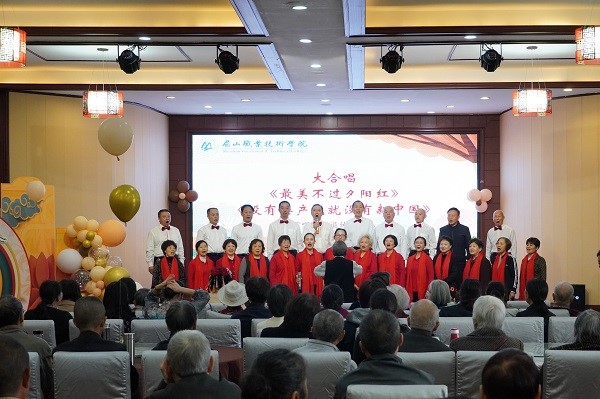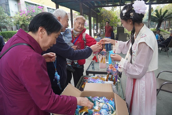 慰问后,老教师们参加了茱萸投壶、写福添寿、香囊DIY、重阳糕点等代表祈福纳吉的游园活动。在“爱在重阳”文艺表演时,部分老教师和学生代表通过乐器独奏、民乐合奏、独唱、合唱、舞蹈、茶艺等节目,让在场的老教师们喜笑颜开,活动现场喝彩声不断。