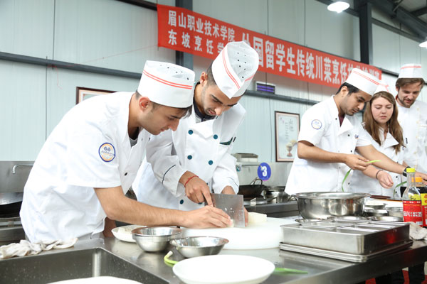 “这已经不是眉山职业技术学院第一次迎来外国留学生。”眉山职业技术学院副院长、东坡味道食品产业学院院长、东坡烹饪学院院长张望研究员表示,“一带一路”倡议自提出以来,学校就立足自身优势,不断深化对外交流合作,不断扩大眉山职业技术学院的影响,先后有荷兰、尼泊尔等国家学生前来学校研修学习,“东坡故里、东坡文化、‘东坡味道’的魅力都通过‘一带一路’传递出去,散发着强烈的吸引力。”