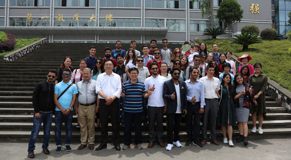 5月13日,来自尼泊尔、印度、阿富汗、乌兹别克斯坦、俄罗斯、波兰、德国等“一带一路”沿线的12个国家的近40名四川大学外国籍研究生来到东坡故里——四川省眉山市,来到眉山职业技术学院,通过学做川菜、学习茶艺表演、参观国际竹艺城体验青神竹编、观赏大熊猫等方式,与眉山职业技术学院的来自尼泊尔农林大学的外国籍研究生开展了一场别开生面的学习交流联谊会,开启了时间短暂而内容丰富的东坡文化体验之旅。