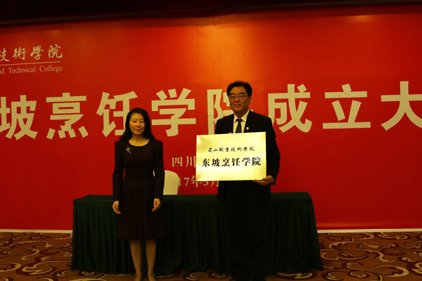 (曹晖为东坡烹饪学院授牌)