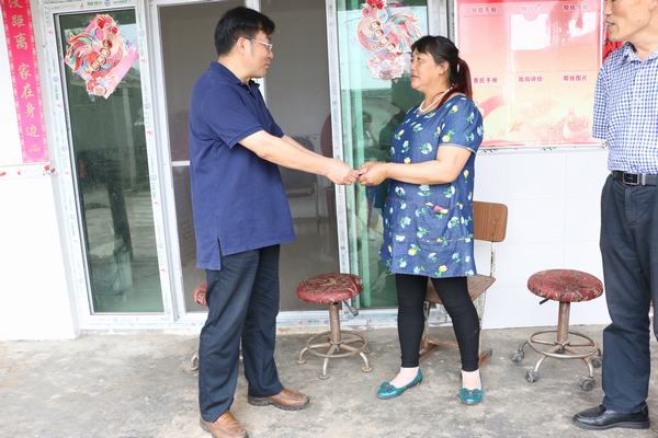 王元珑向联系户周素英讲解了省第十一次党代会精神,让其踏踏实实地发展产业,在学院的帮扶下,致富奔康,争取把日子越过越安逸。王元珑为周素英家送上了产业发展资金。