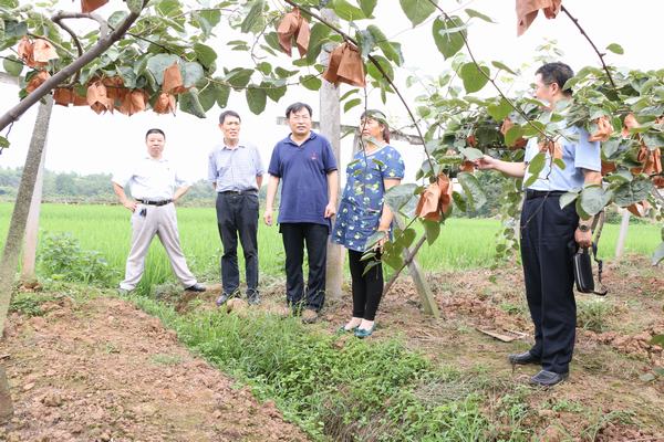 (王元珑一行查看猕猴桃挂果情况)